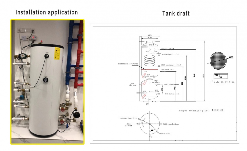 Heat pump water buffer tank water boiler cylinders heat pump household heating cooling hot water tank